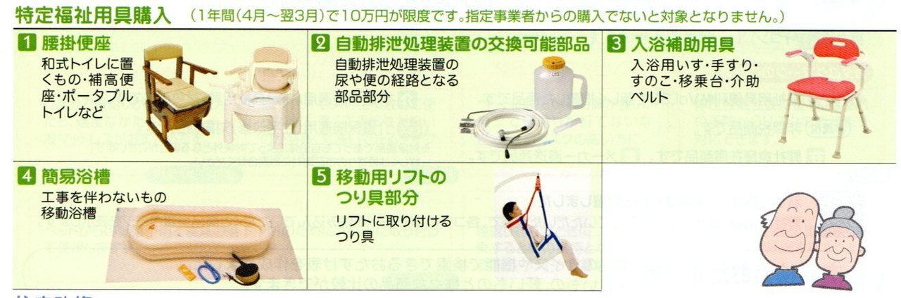 介護保険では、ご自宅での生活をより快適に、安全にするための福祉用具を購入できる制度があります。購入対象となるのは、以下の福祉用具です。